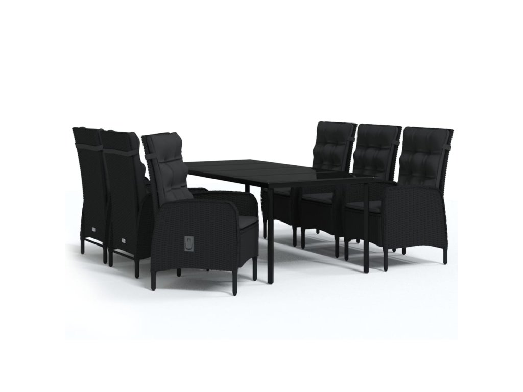 7dílný zahradní jídelní set s poduškami černý 3099368