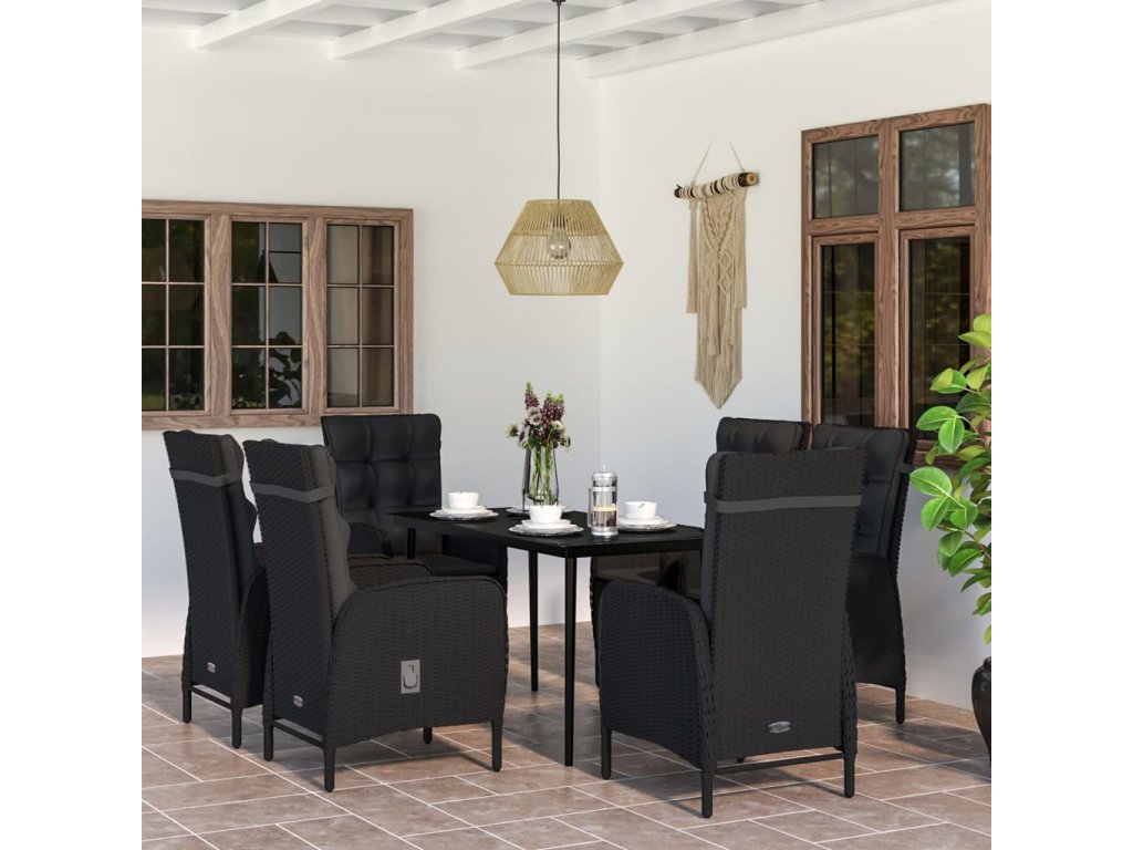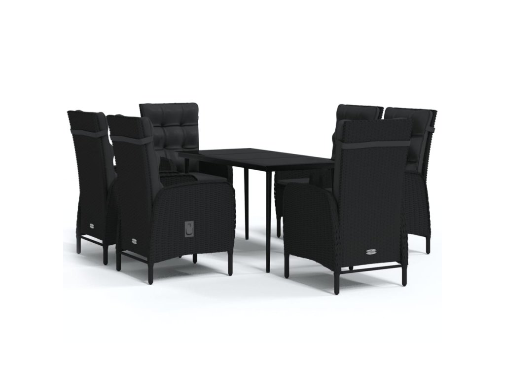 7dílný zahradní jídelní set s poduškami černý 3099369
