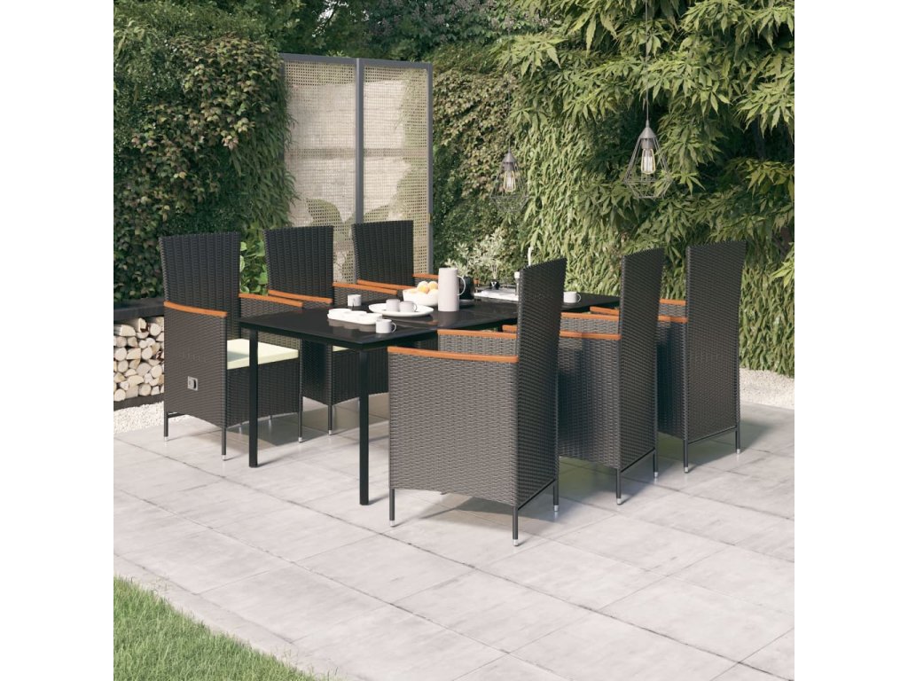 7dílný zahradní jídelní set s poduškami černý 3099429