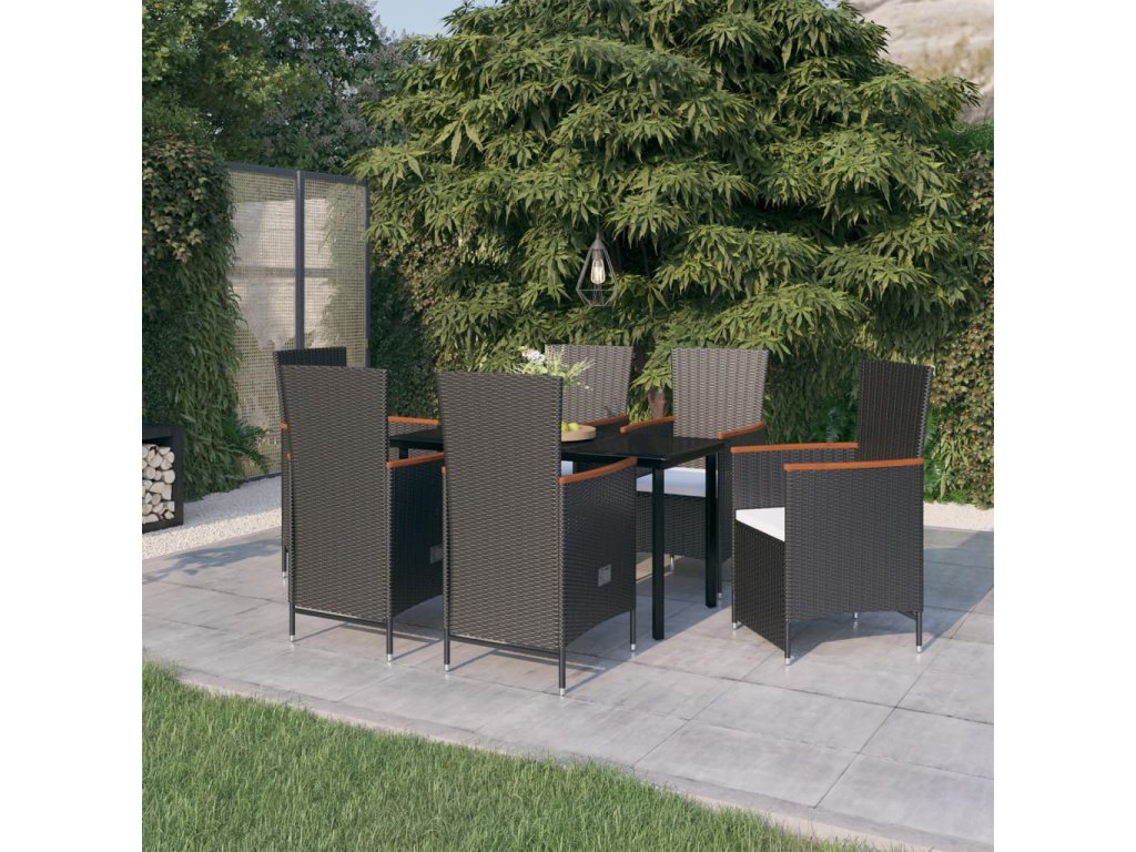 7dílný zahradní jídelní set s poduškami černý 3099461