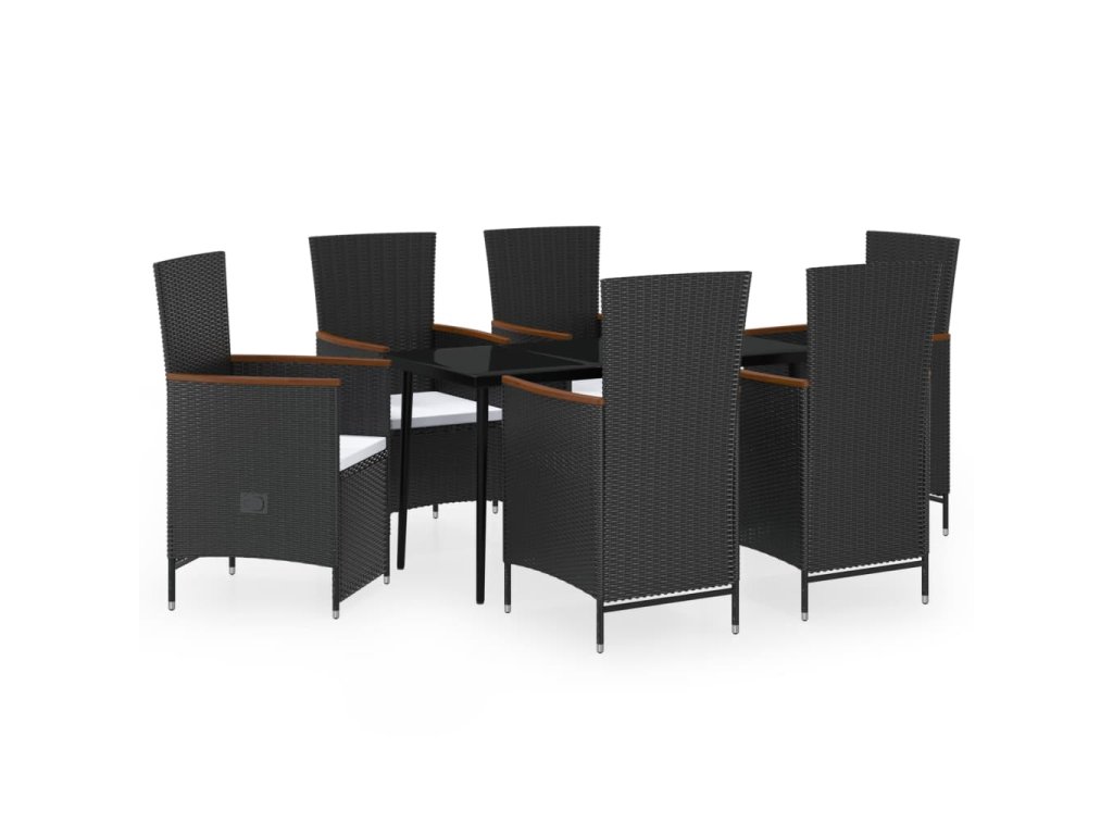 7dílný zahradní jídelní set s poduškami černý 3099467