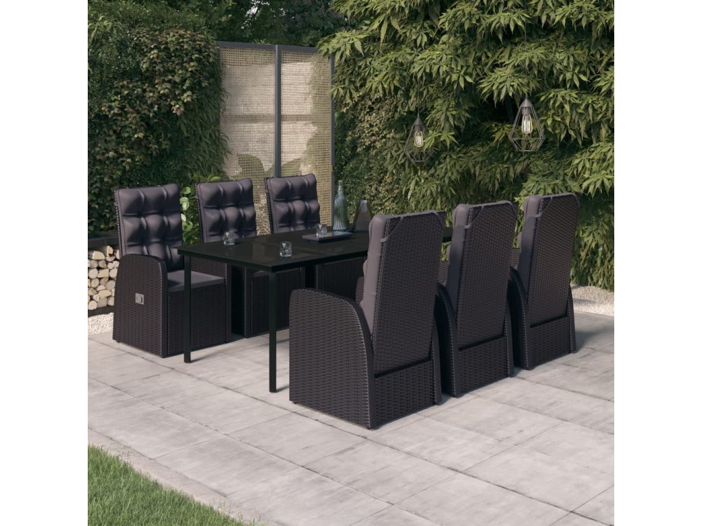 7dílný zahradní jídelní set s poduškami černý 3099483