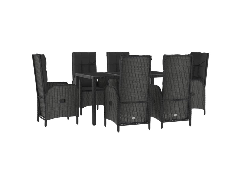 7dílný zahradní jídelní set s poduškami černý a šedý polyratan 3185056
