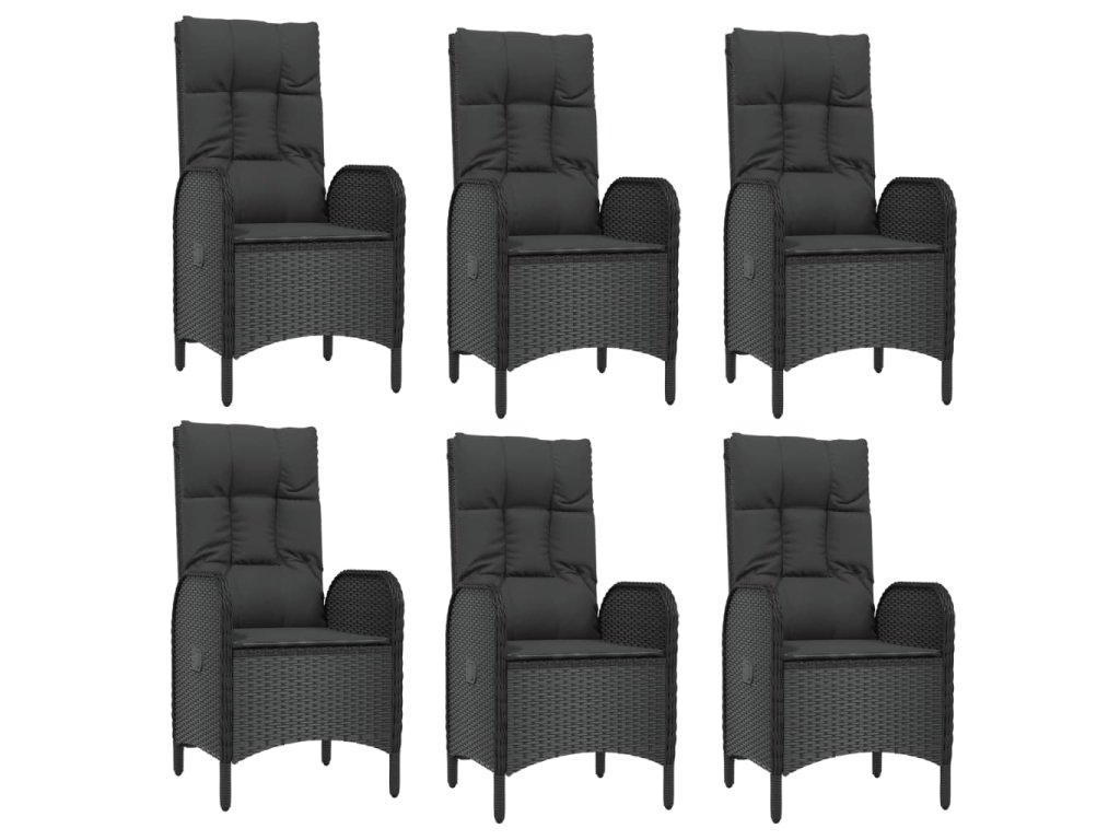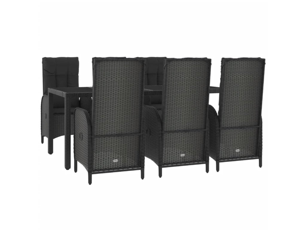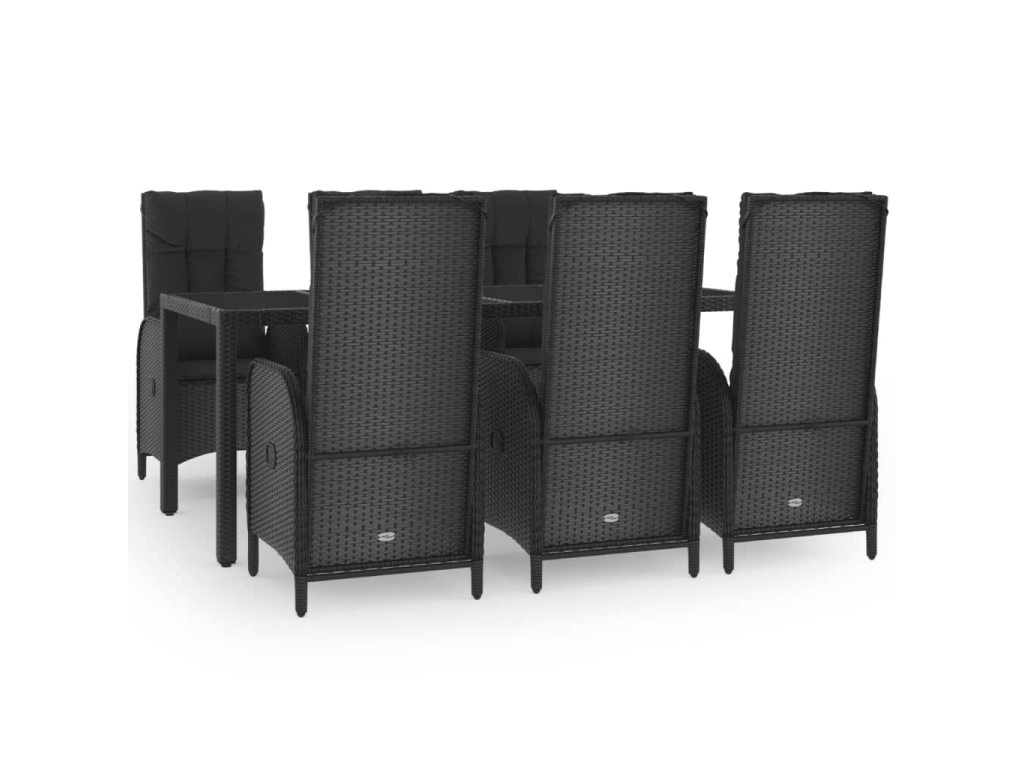 7dílný zahradní jídelní set s poduškami černý a šedý polyratan 3185057