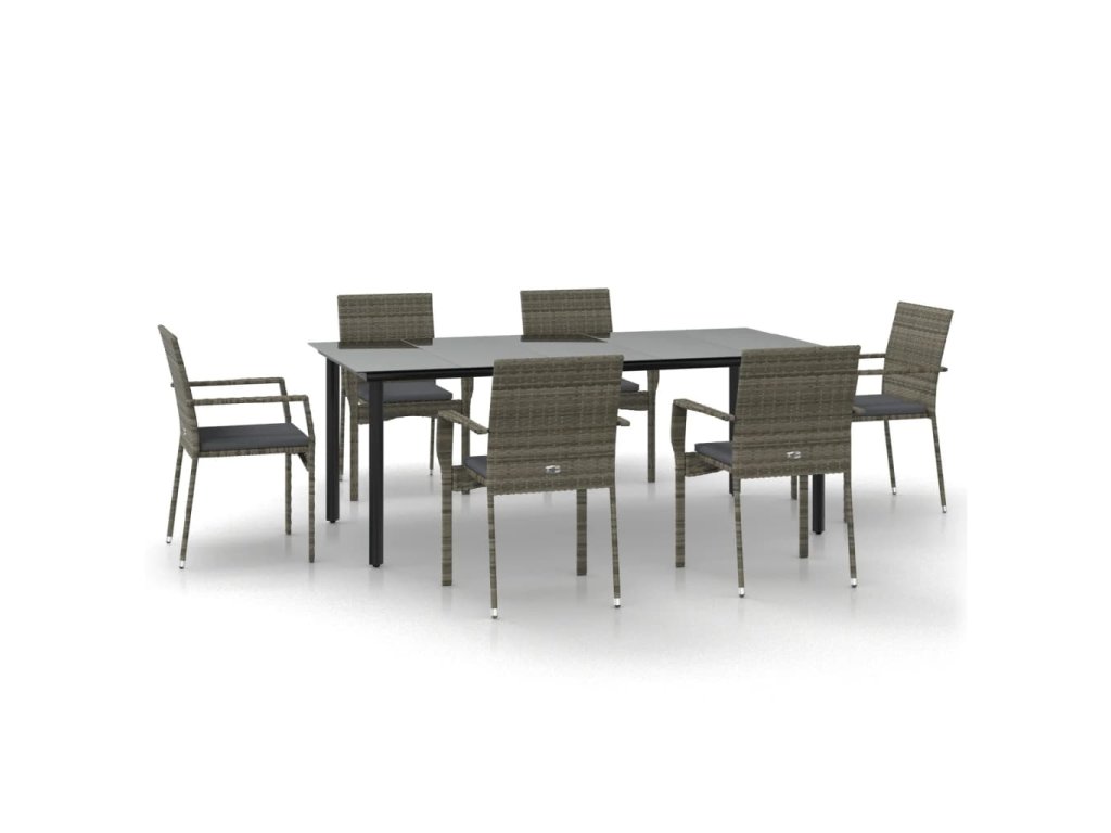 7dílný zahradní jídelní set s poduškami černý a šedý polyratan 3185141