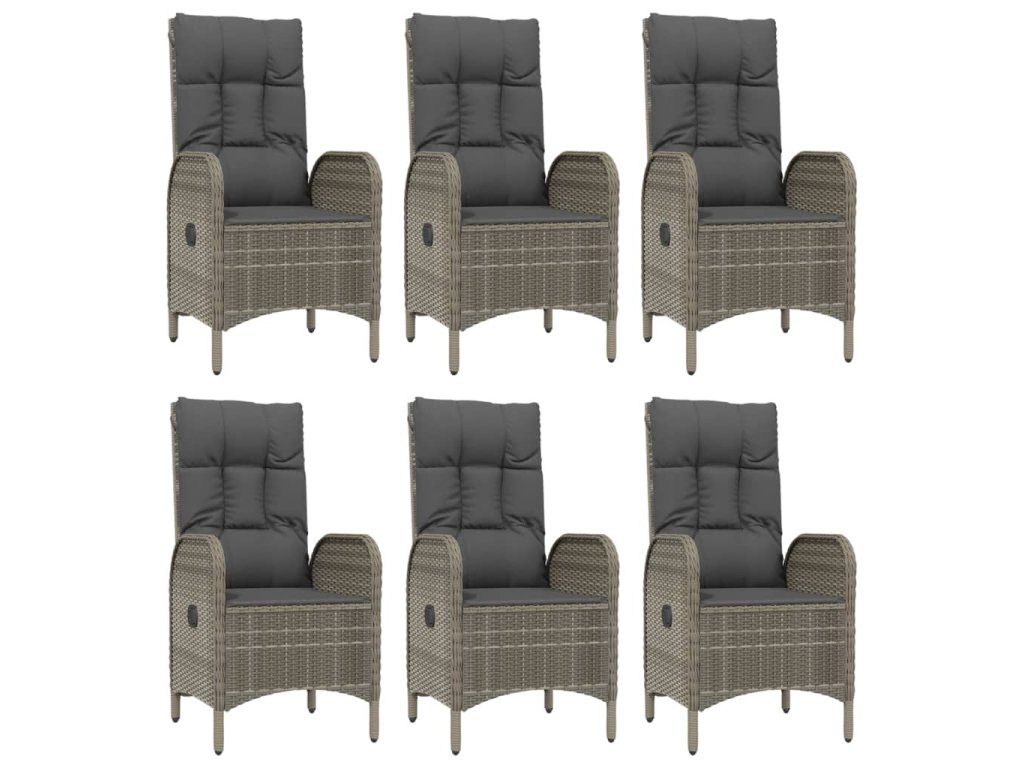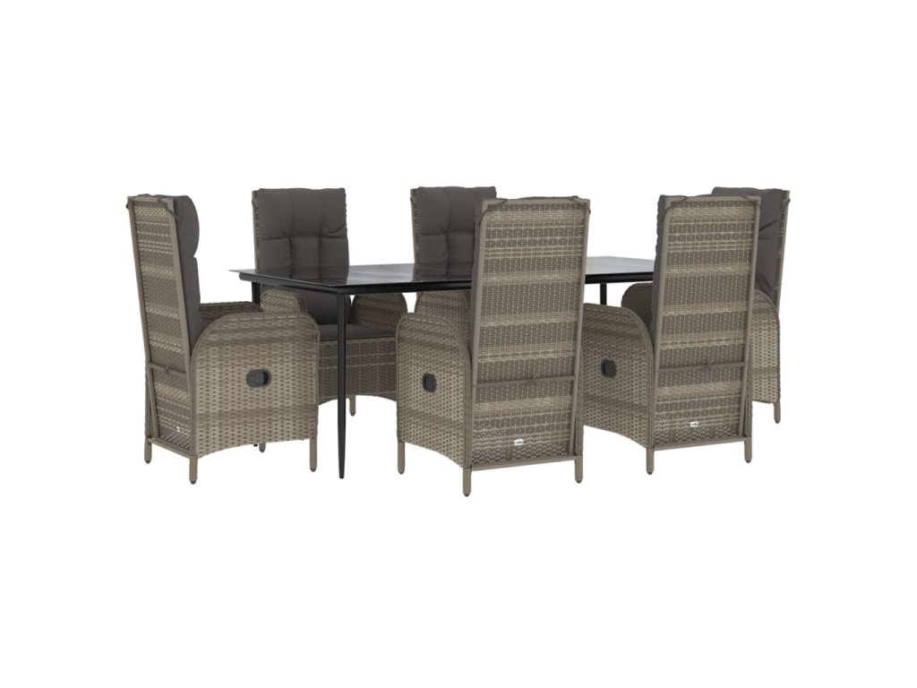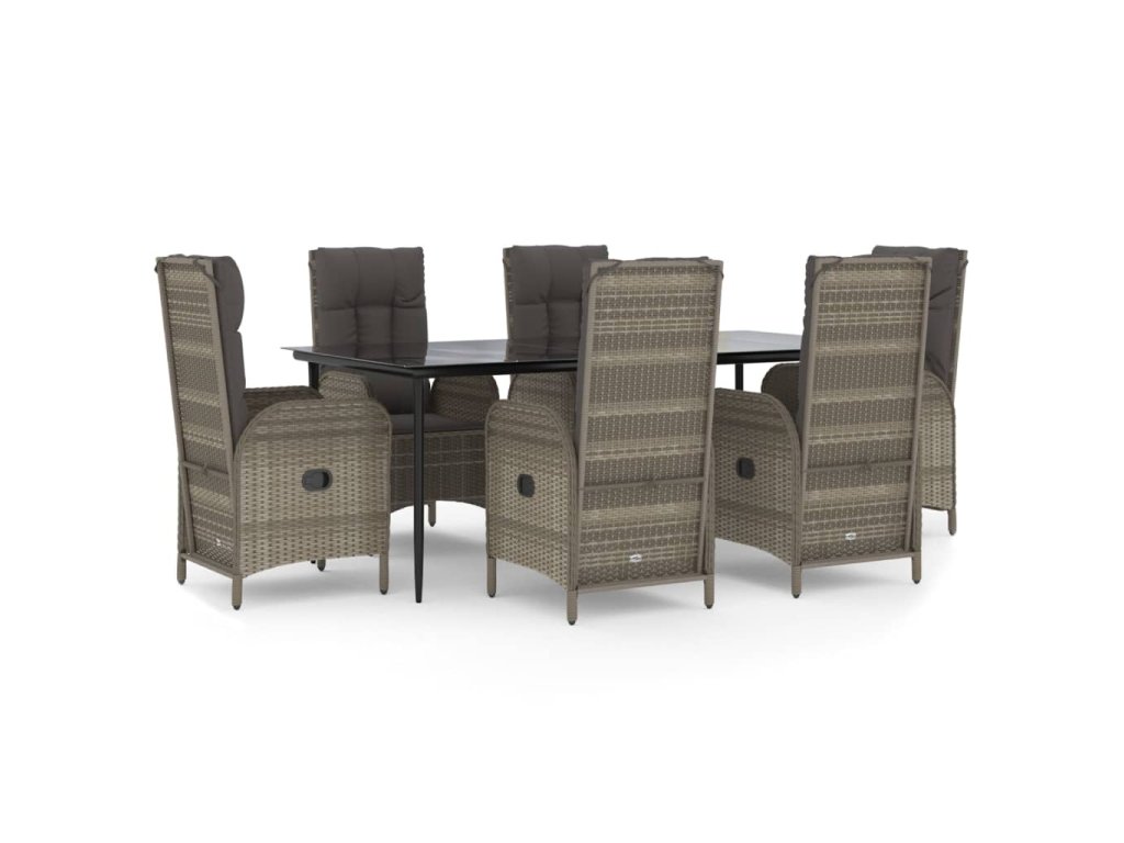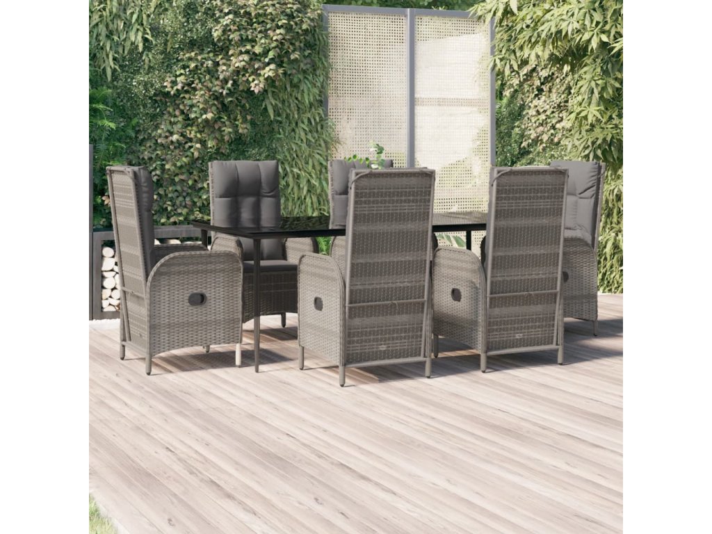 7dílný zahradní jídelní set s poduškami černý a šedý polyratan 3185183