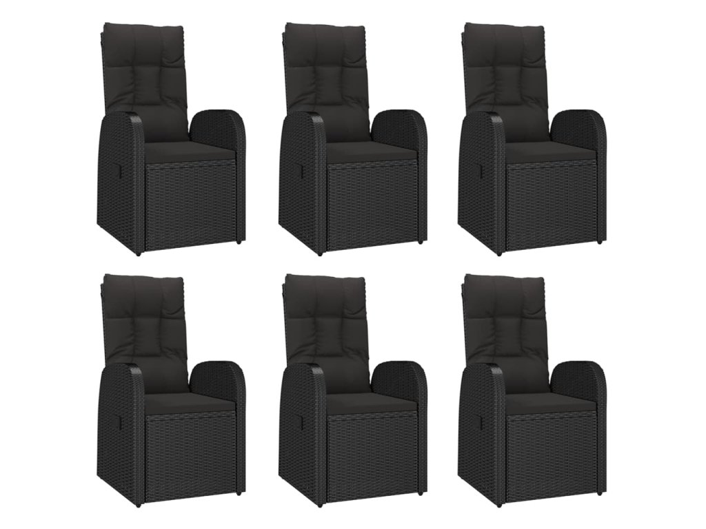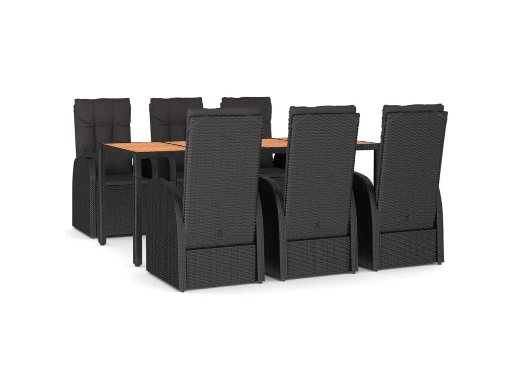 7dílný zahradní jídelní set s poduškami černý polyratan 3157603