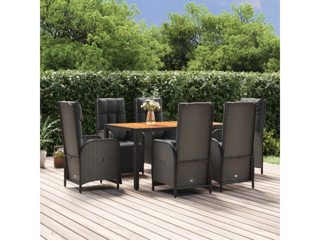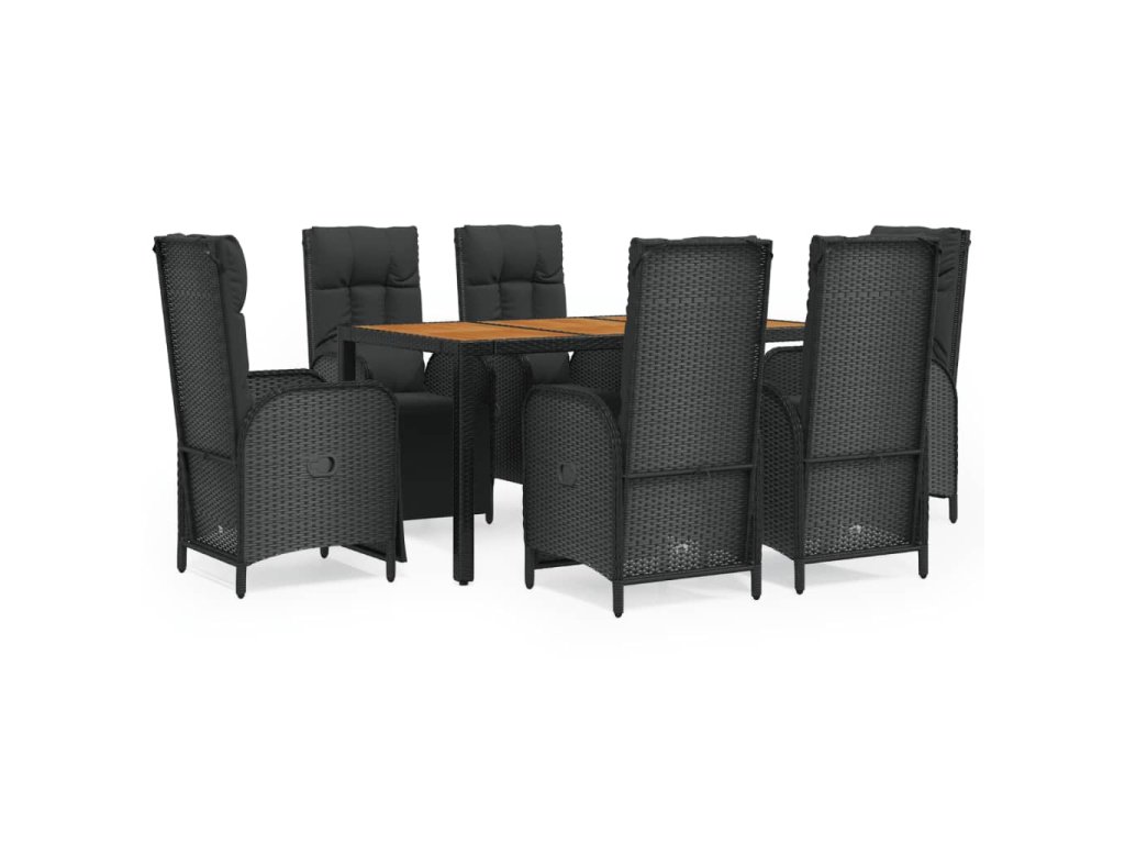 7dílný zahradní jídelní set s poduškami černý polyratan 3185077