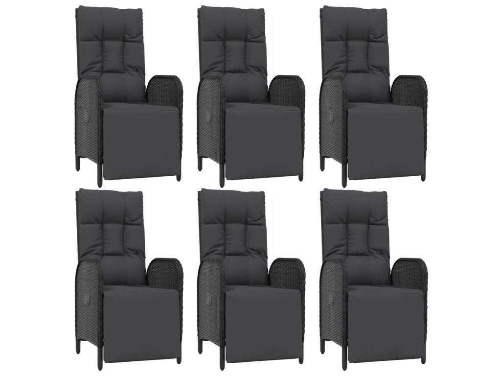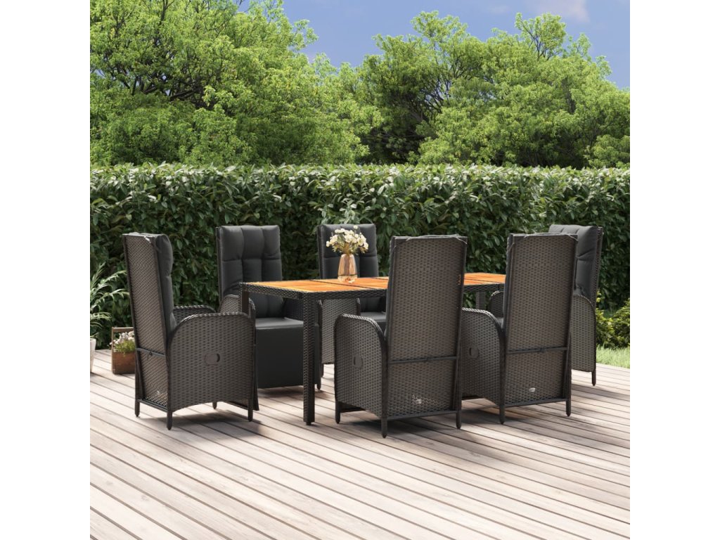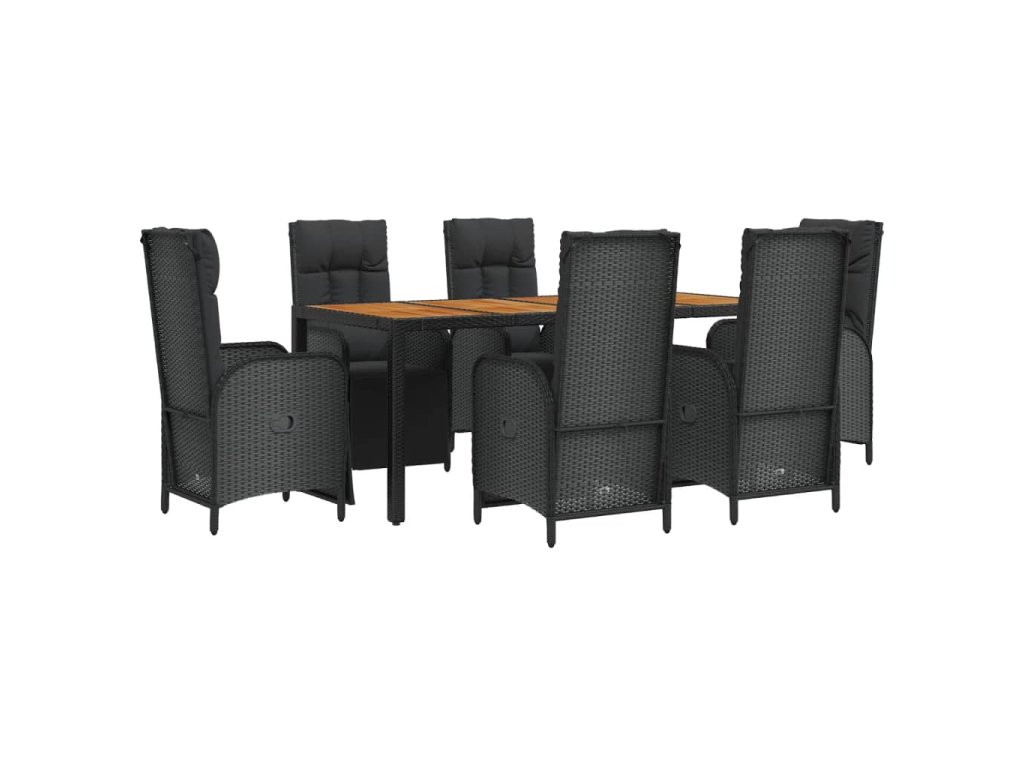 7dílný zahradní jídelní set s poduškami černý polyratan 3185078