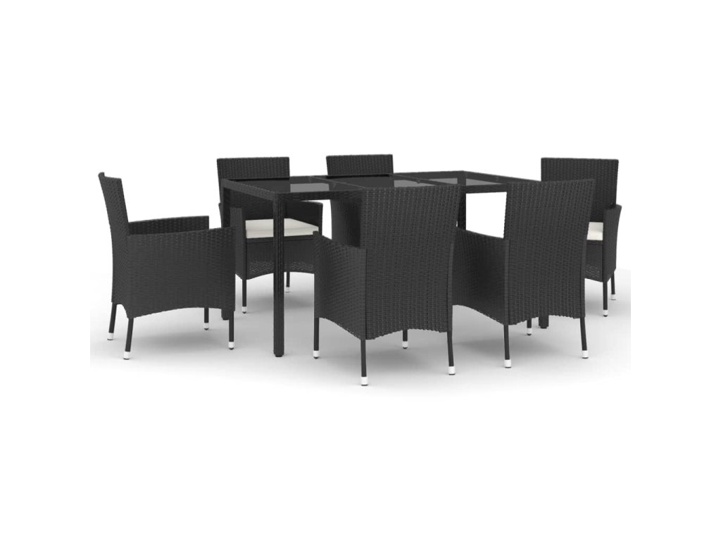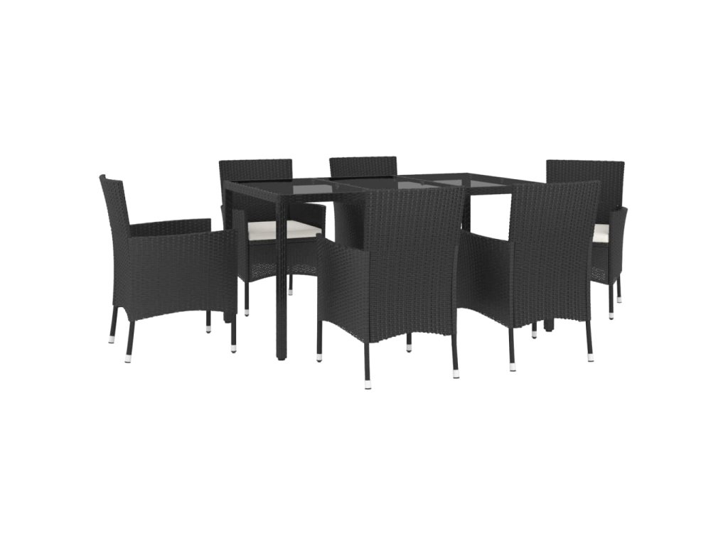 7dílný zahradní jídelní set s poduškami černý polyratan 3187319