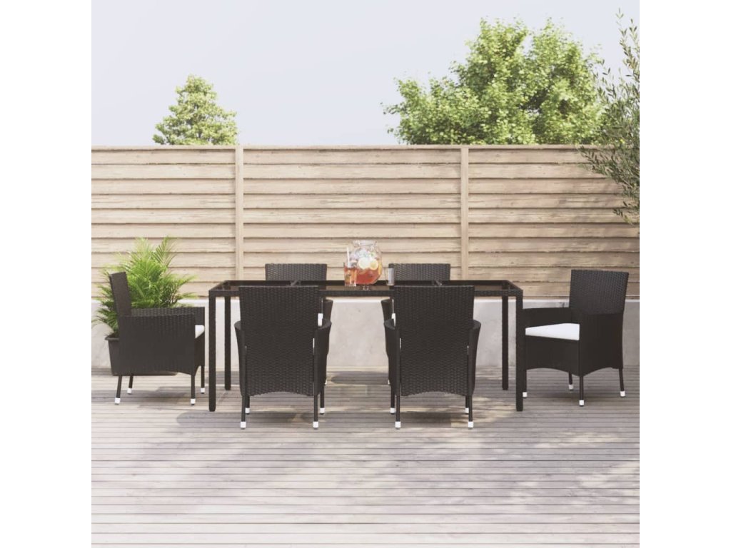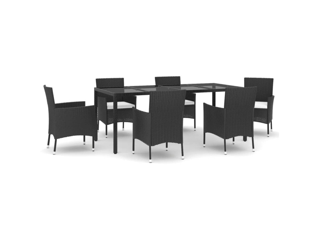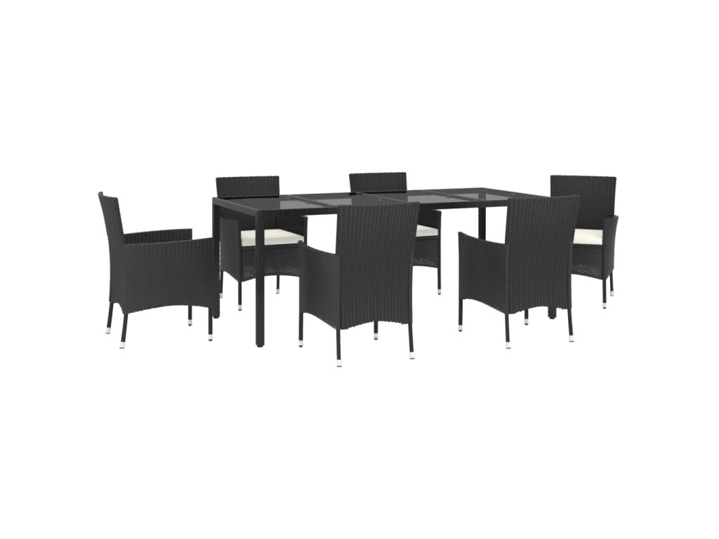 7dílný zahradní jídelní set s poduškami černý polyratan 3187320