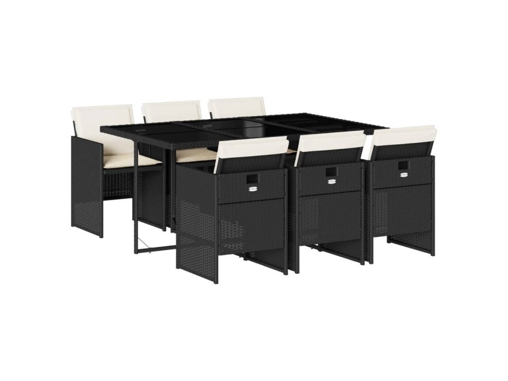 7dílný zahradní jídelní set s poduškami černý polyratan 3210546