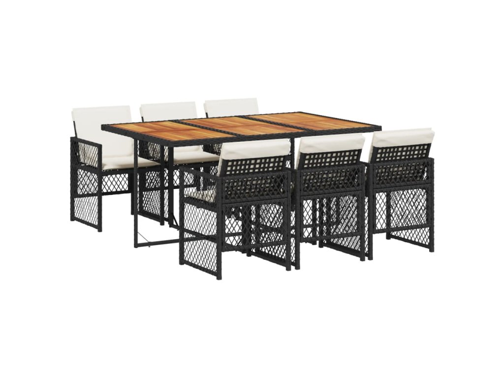 7dílný zahradní jídelní set s poduškami černý polyratan 3210735