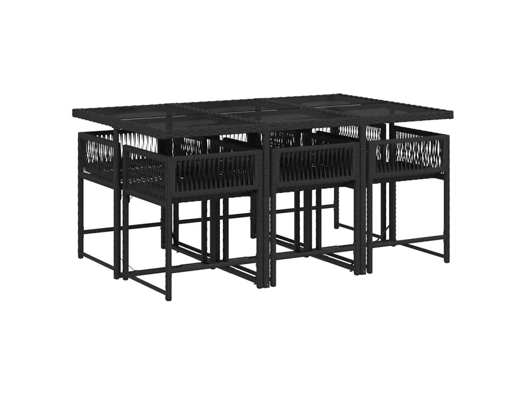 7dílný zahradní jídelní set s poduškami černý polyratan 3211447