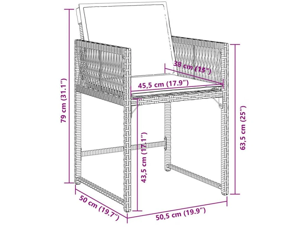 - Rozměry podušky na židli: 76 x 45,5 x 2 cm (D x Š x T)