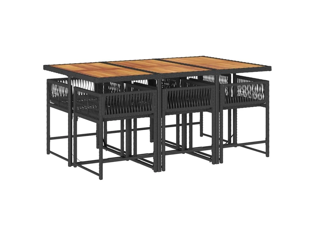 7dílný zahradní jídelní set s poduškami černý polyratan 3211455