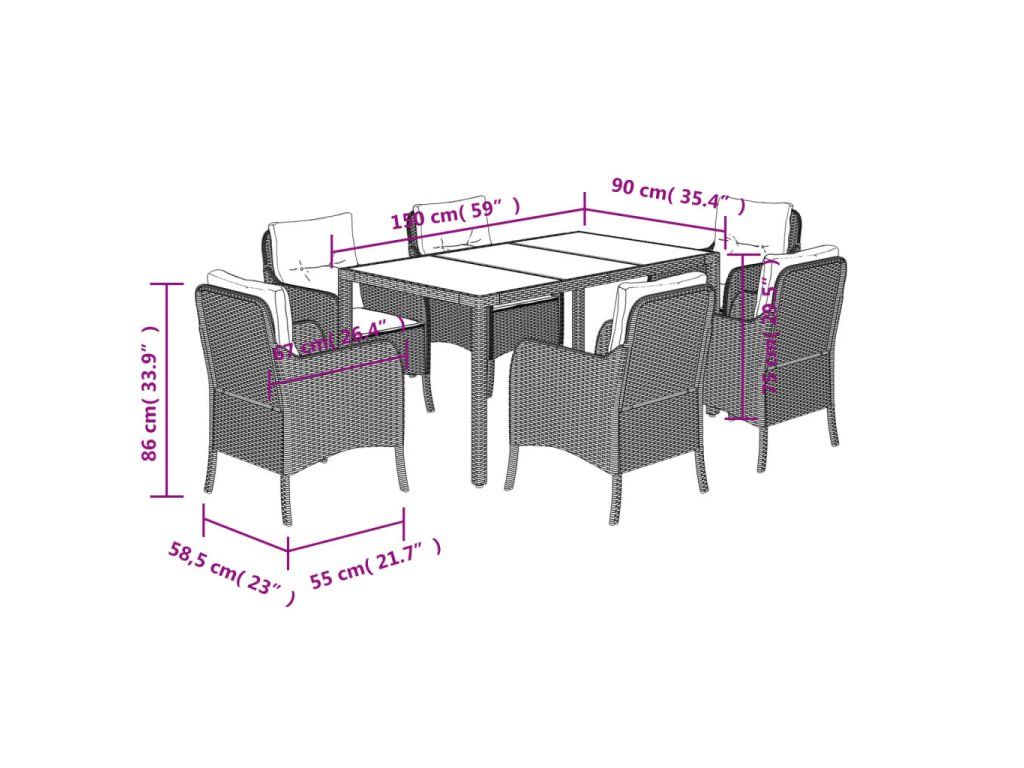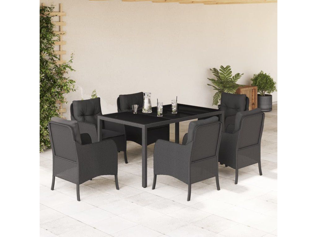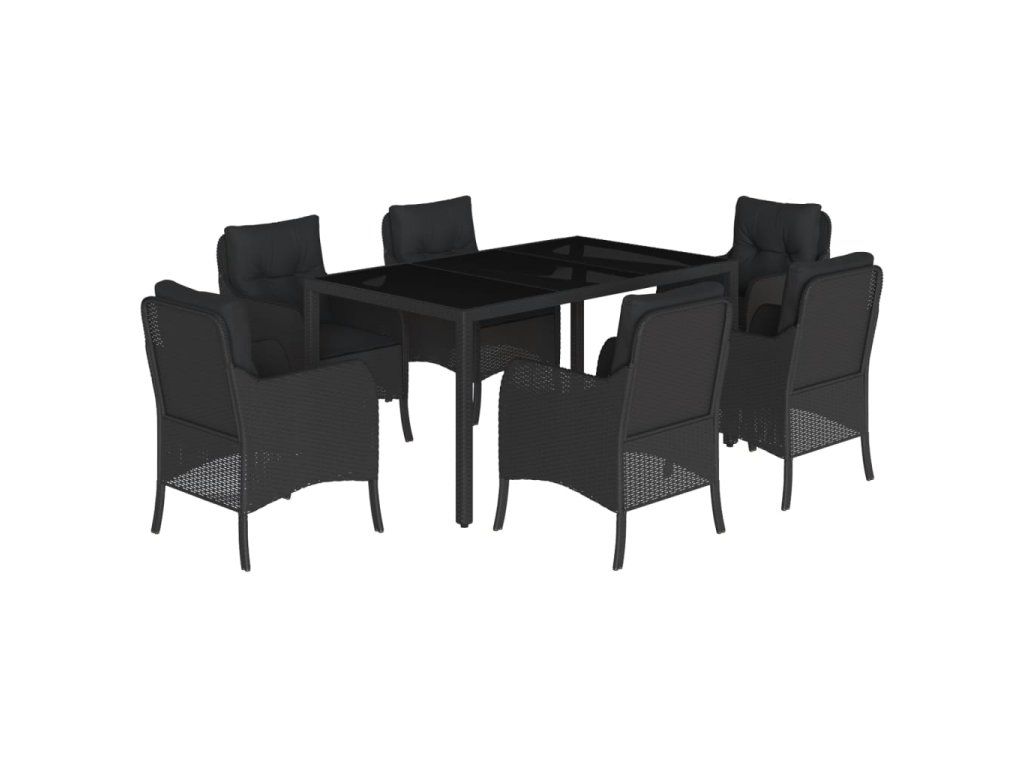 7dílný zahradní jídelní set s poduškami černý polyratan 3211851