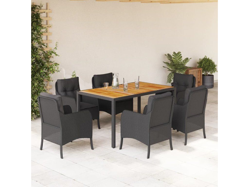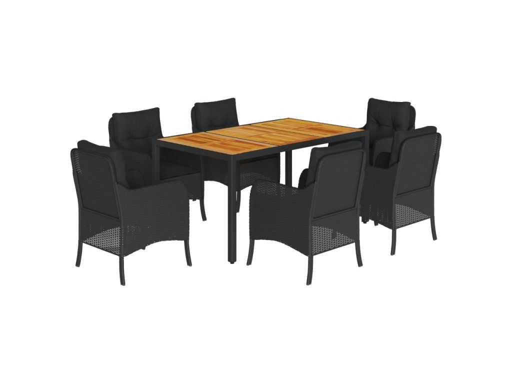 7dílný zahradní jídelní set s poduškami černý polyratan 3211869