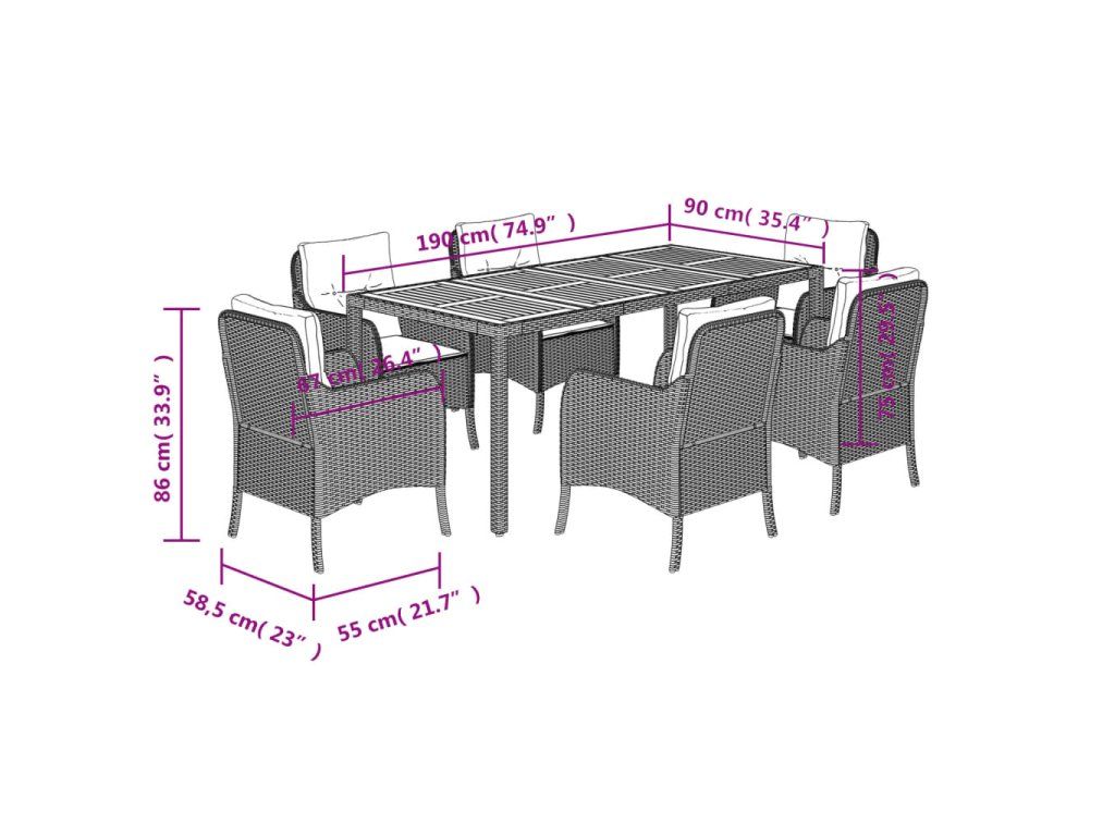 7dílný zahradní jídelní set s poduškami černý polyratan 3211870