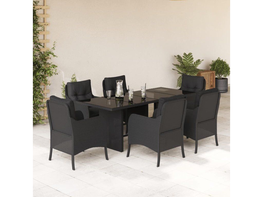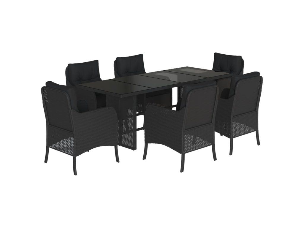 7dílný zahradní jídelní set s poduškami černý polyratan 3211880