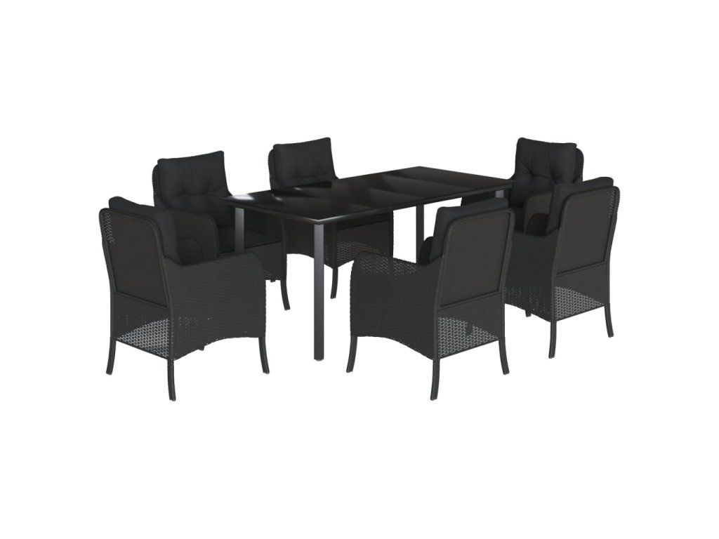 7dílný zahradní jídelní set s poduškami černý polyratan 3211931
