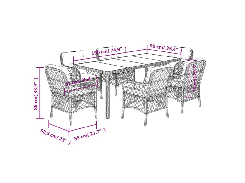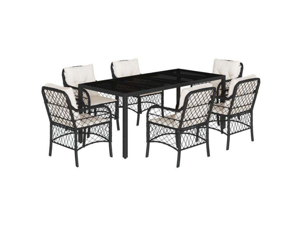 7dílný zahradní jídelní set s poduškami černý polyratan 3212022