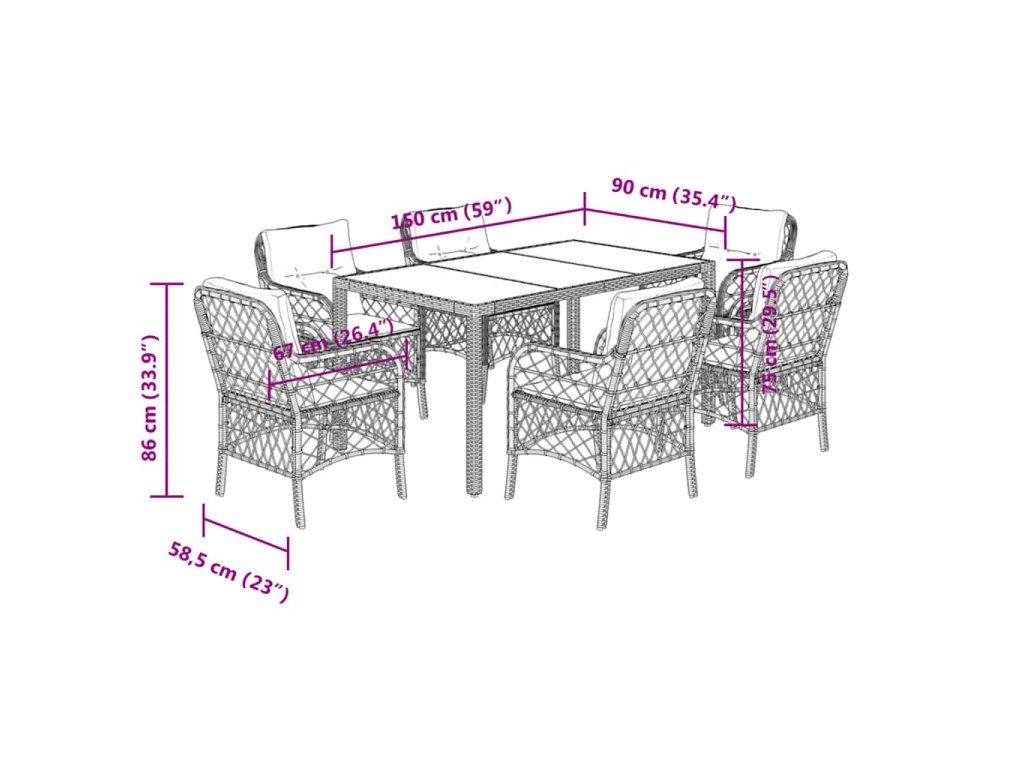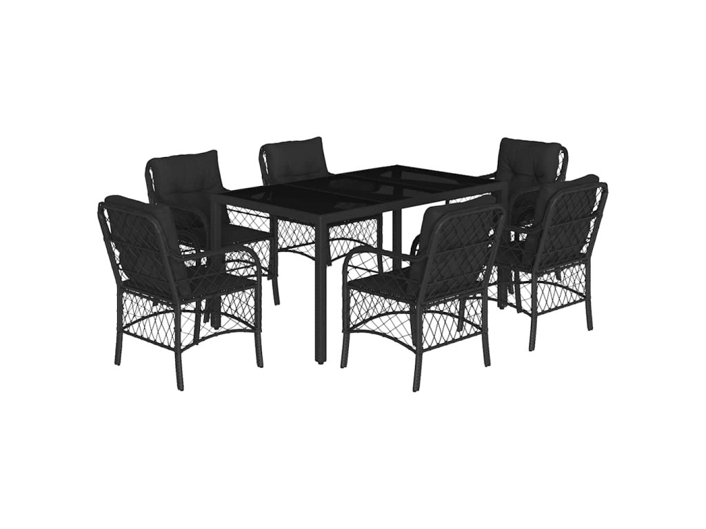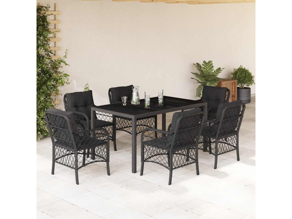 7dílný zahradní jídelní set s poduškami černý polyratan 3212027