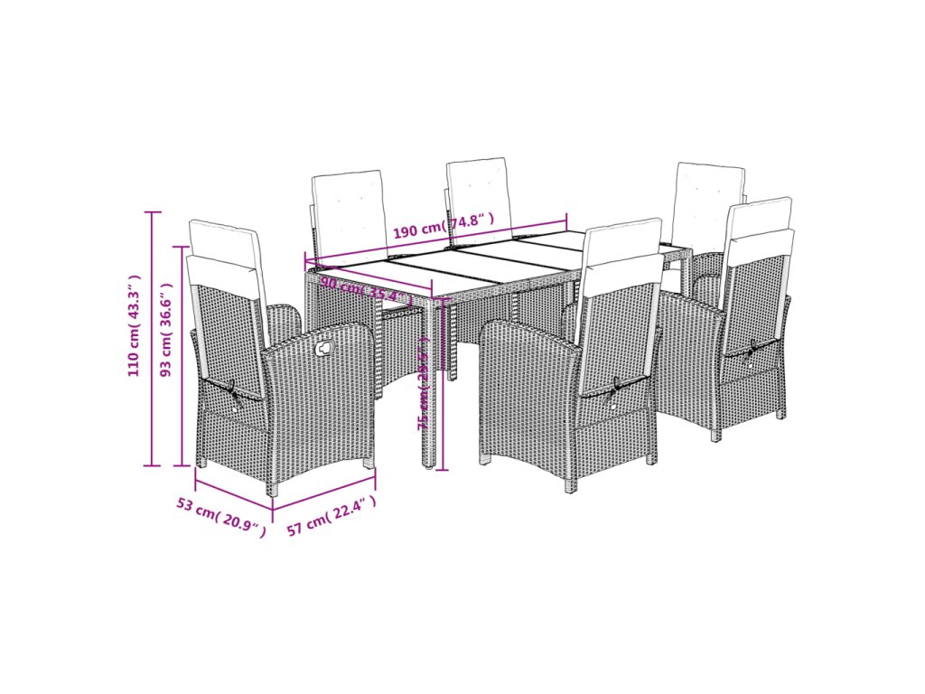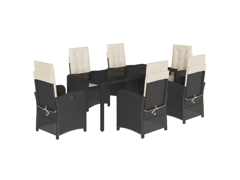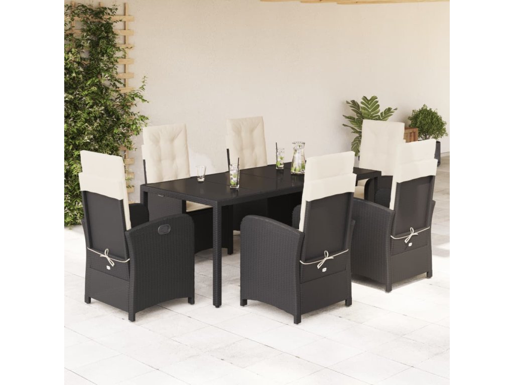7dílný zahradní jídelní set s poduškami černý polyratan 3212200