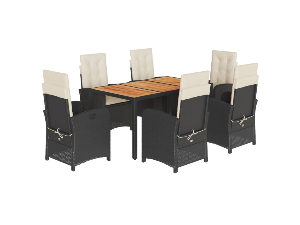 7dílný zahradní jídelní set s poduškami černý polyratan 3212226