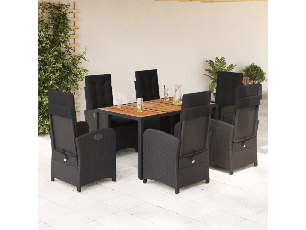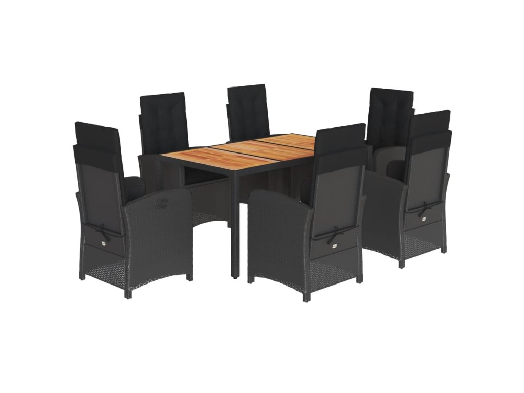 7dílný zahradní jídelní set s poduškami černý polyratan 3212235