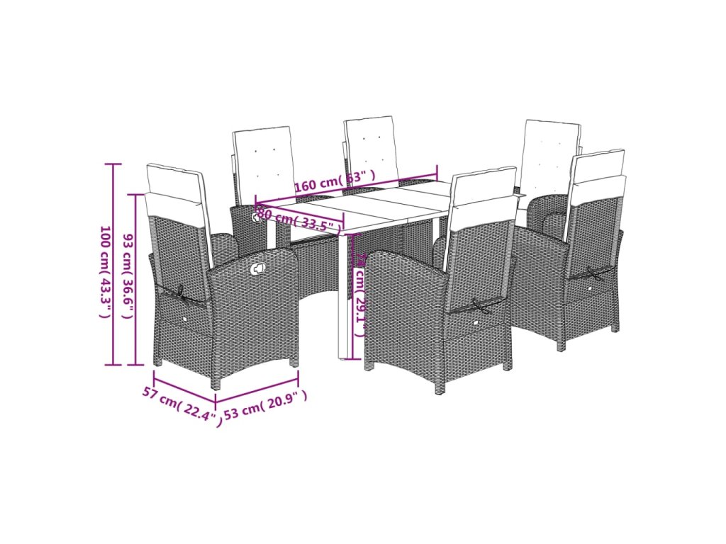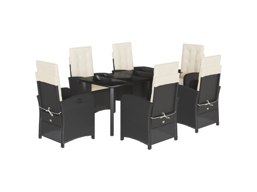 7dílný zahradní jídelní set s poduškami černý polyratan 3212305