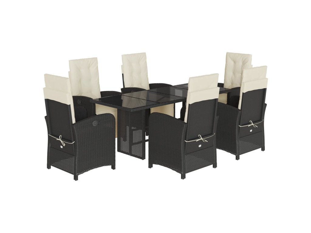 7dílný zahradní jídelní set s poduškami černý polyratan 3212486