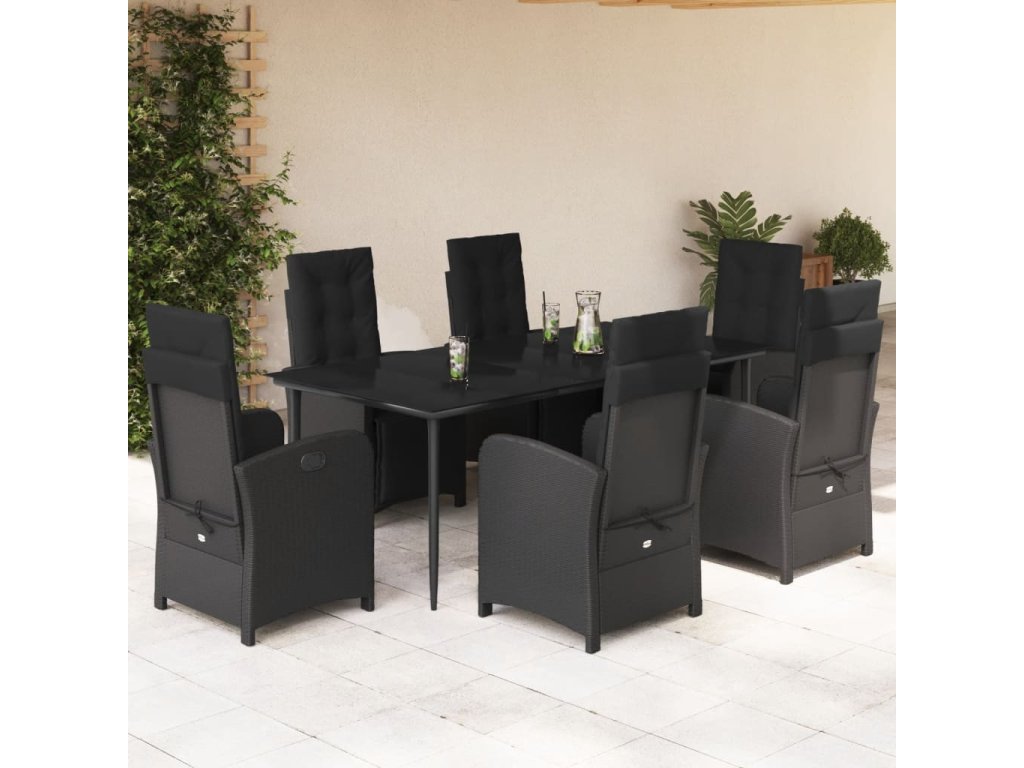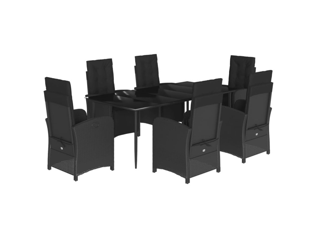 7dílný zahradní jídelní set s poduškami černý polyratan 3212533