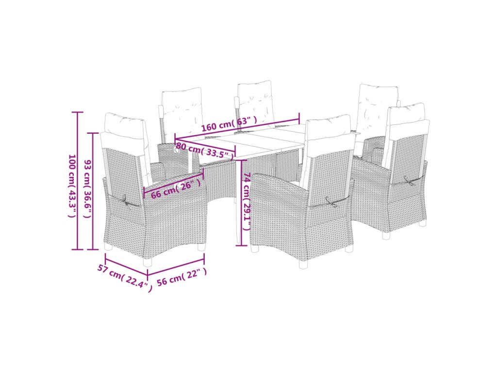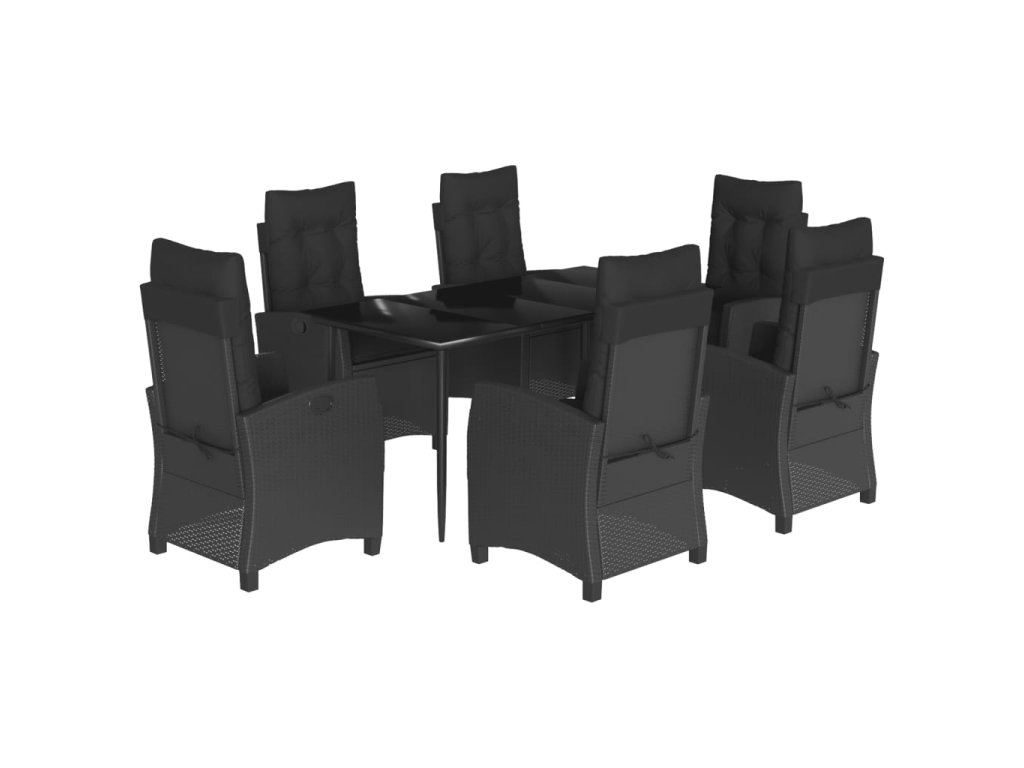 7dílný zahradní jídelní set s poduškami černý polyratan 3212747