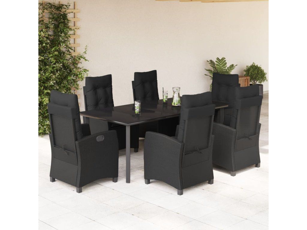 7dílný zahradní jídelní set s poduškami černý polyratan 3212759
