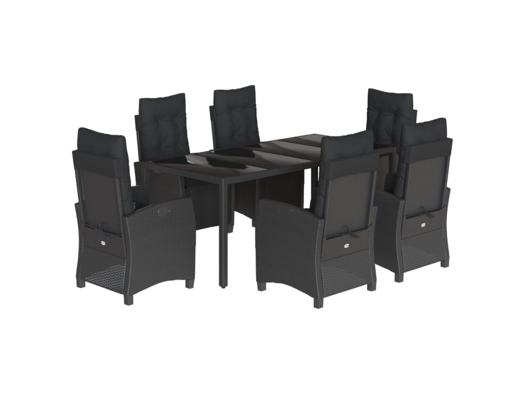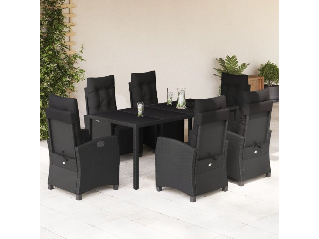 7dílný zahradní jídelní set s poduškami černý polyratan 3212892