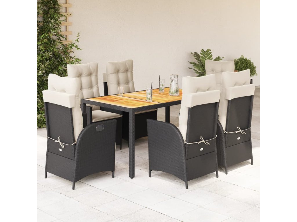 7dílný zahradní jídelní set s poduškami černý polyratan 3213090