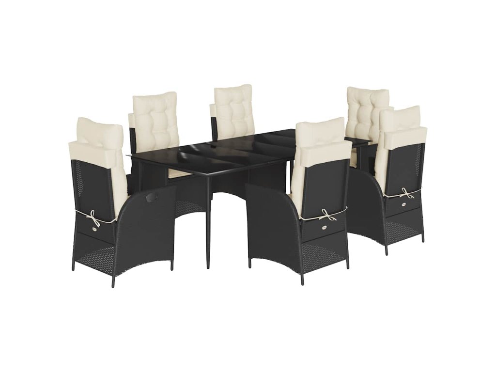 7dílný zahradní jídelní set s poduškami černý polyratan 3213161