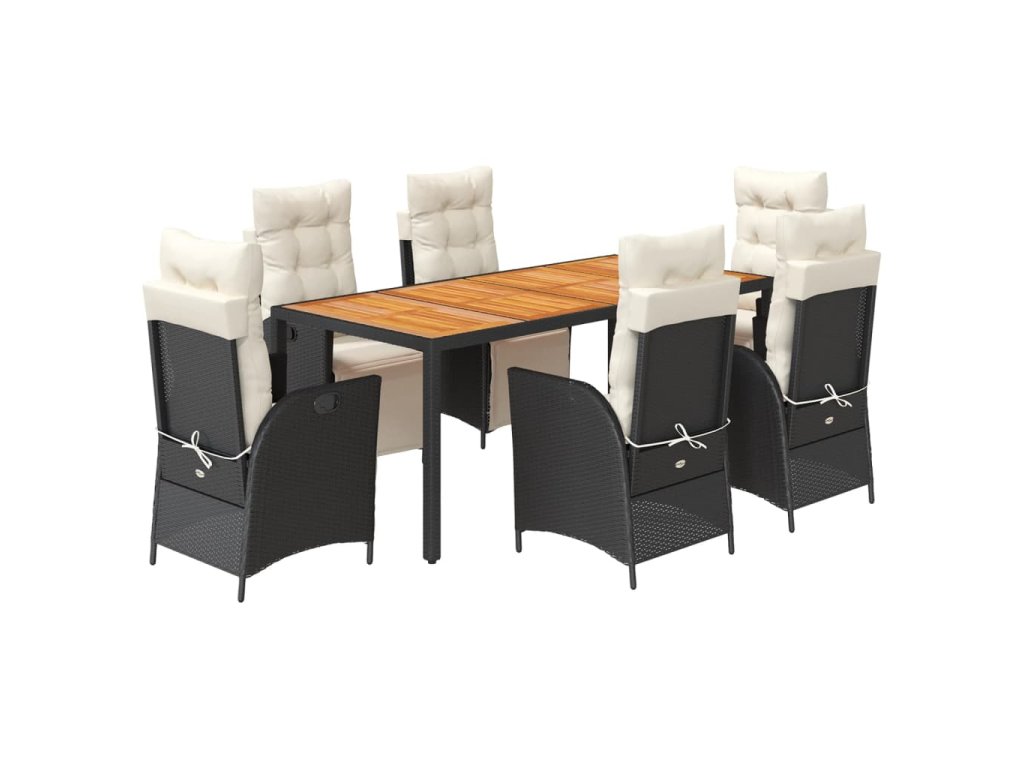 7dílný zahradní jídelní set s poduškami černý polyratan 3213336