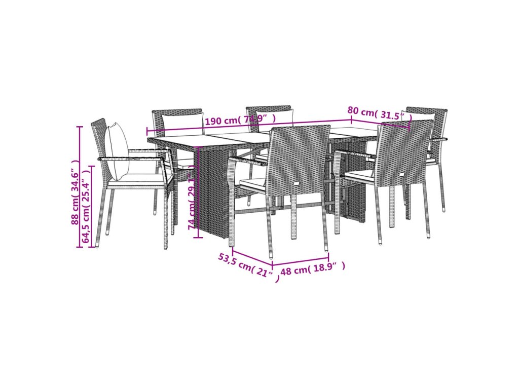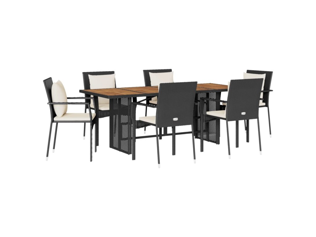 7dílný zahradní jídelní set s poduškami černý polyratan 3213498