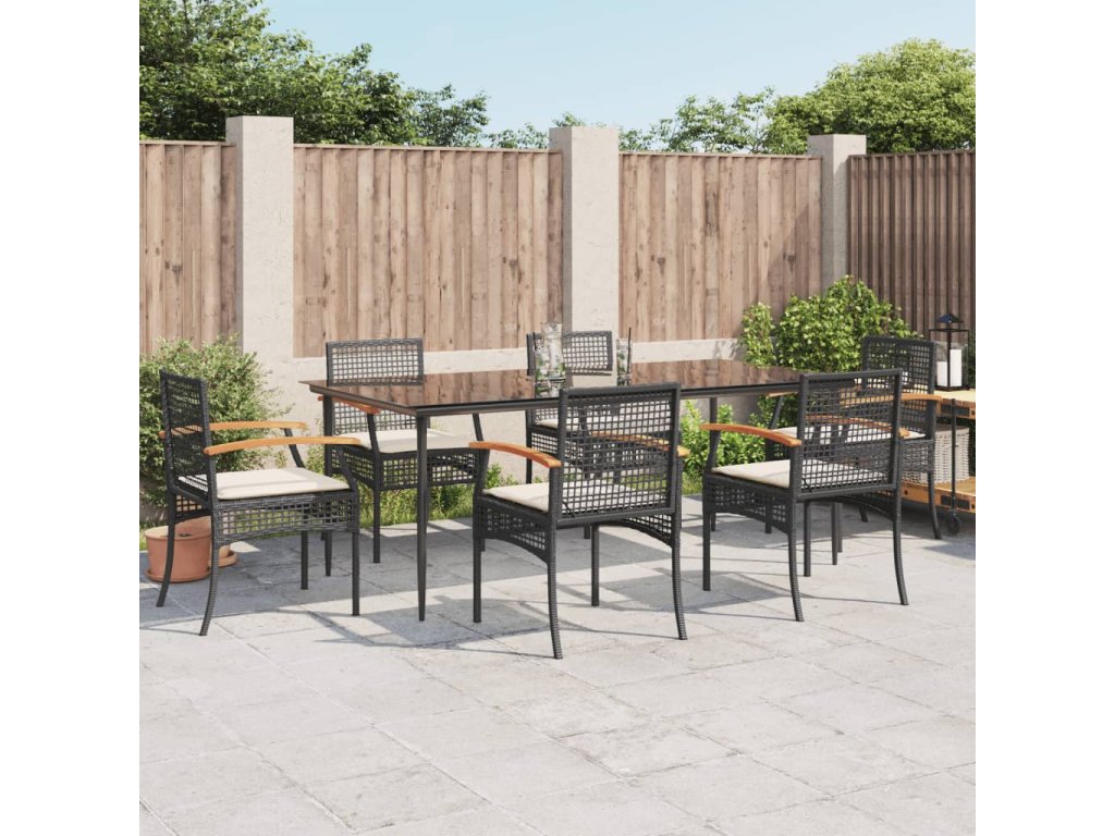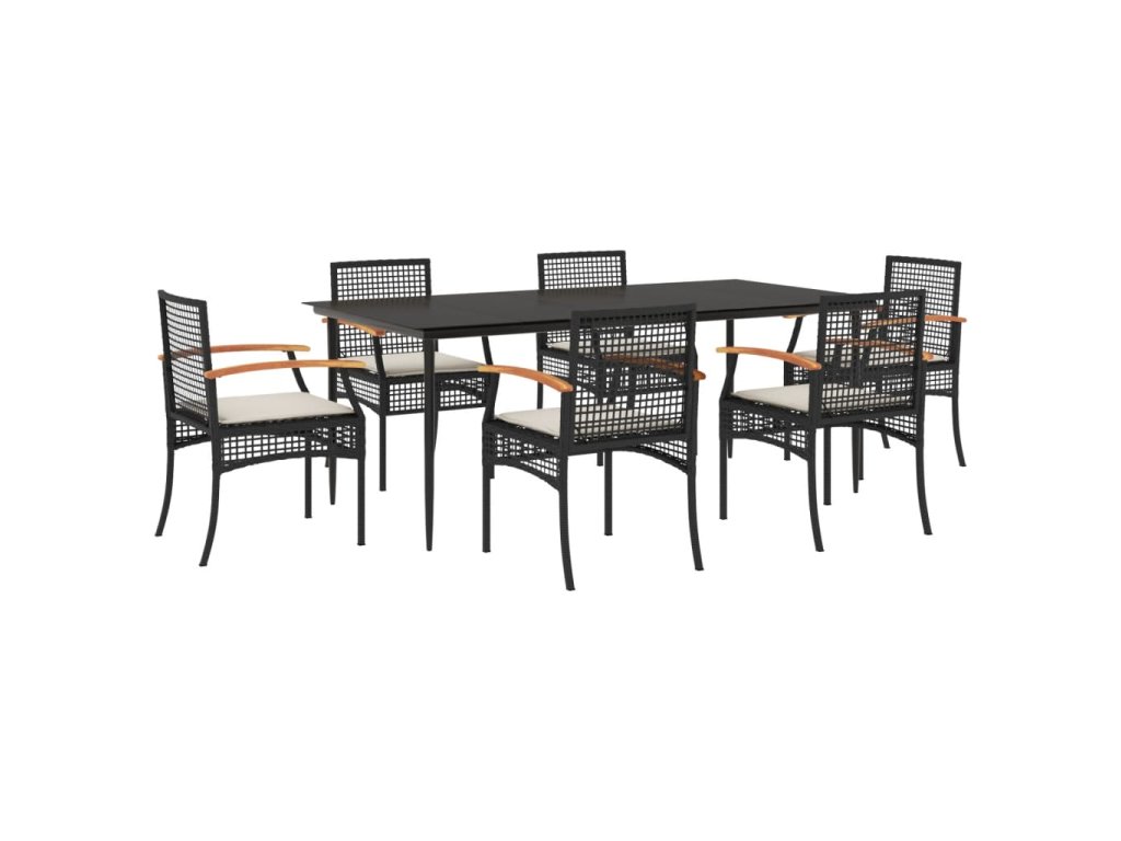 7dílný zahradní jídelní set s poduškami černý polyratan 3213601