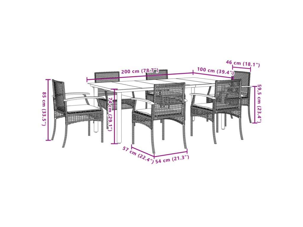 - Materiál: PE ratan, práškově lakovaná ocel, masivní akáciové dřevo s olejovou povrchovou úpravou