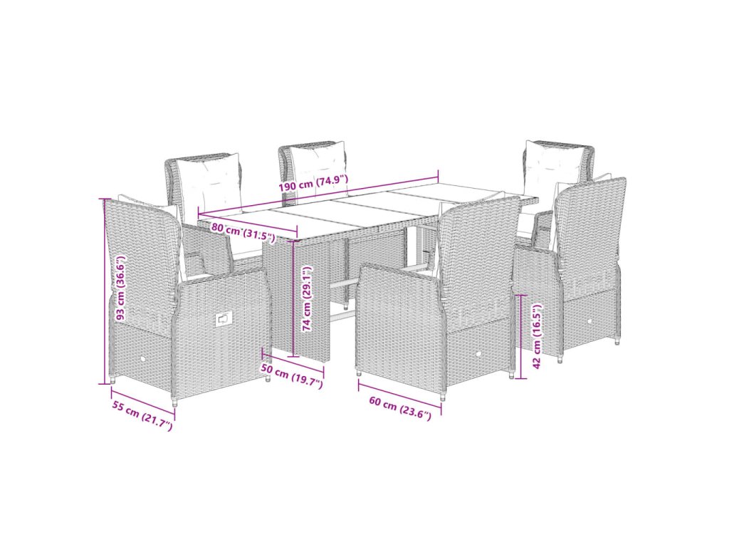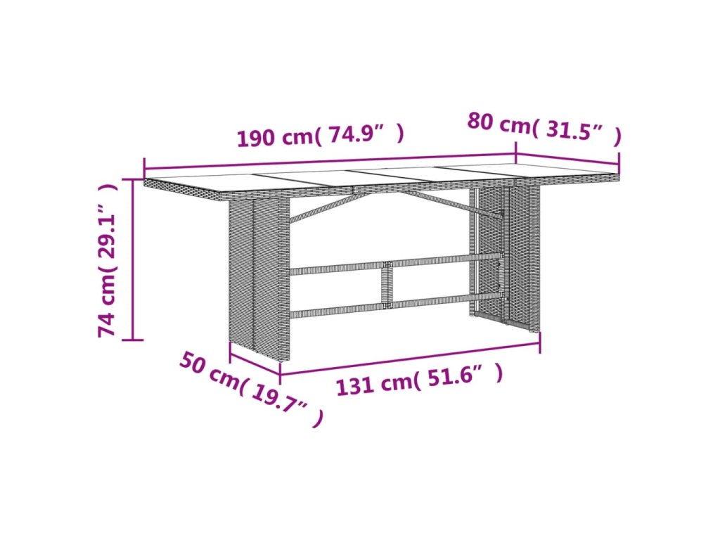 - Rozměry: 190 x 80 x 74 cm (D x Š x V)