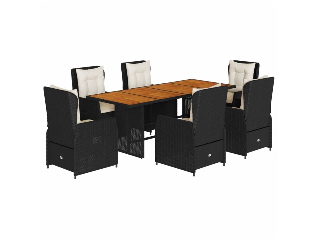 7dílný zahradní jídelní set s poduškami černý polyratan 3262779