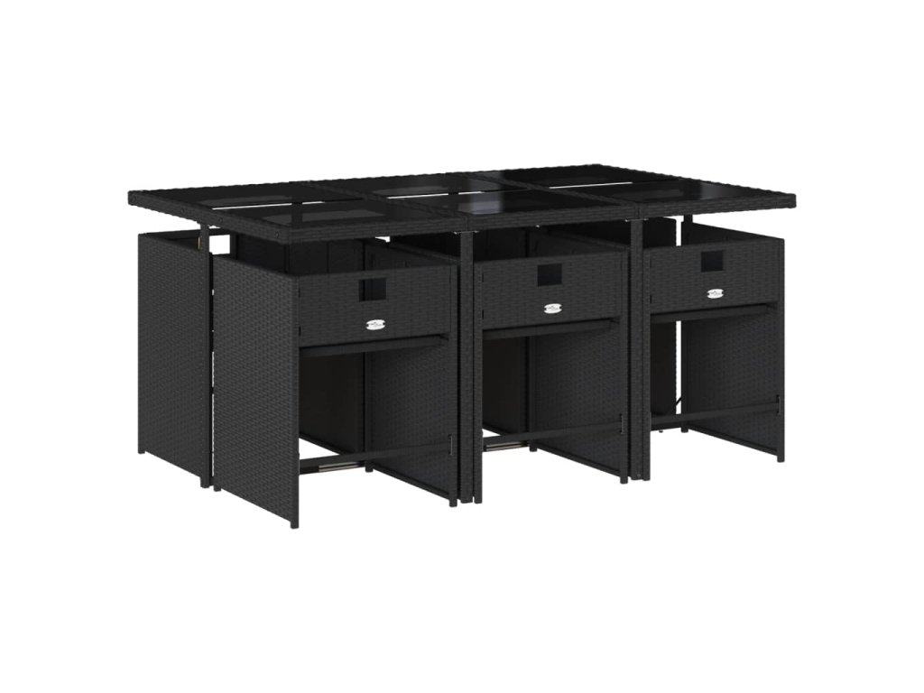 7dílný zahradní jídelní set s poduškami černý polyratan 3277853
