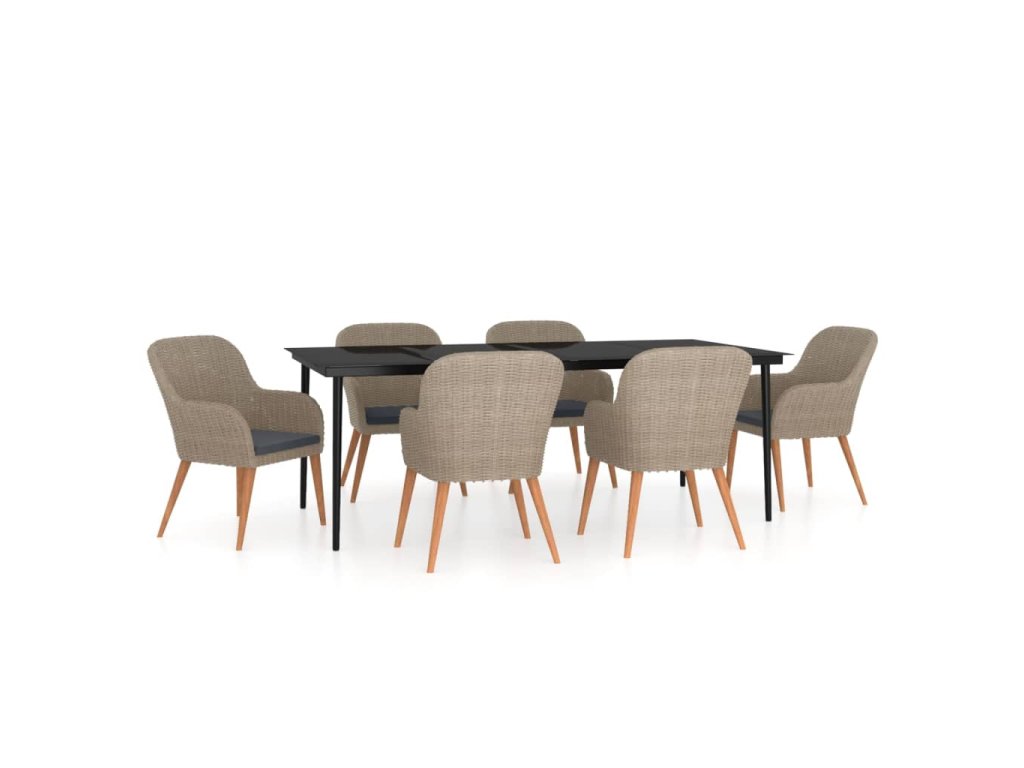 7dílný zahradní jídelní set s poduškami hnědý 3099527
