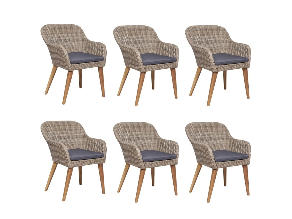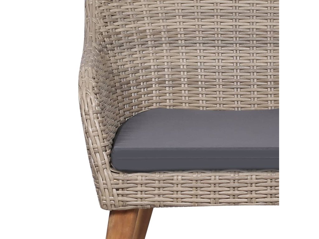- Materiál: polyratan, práškově lakovaná ocel, textil (100% polyester), masivní akáciové dřevo s olejovou povrchovou úpravou