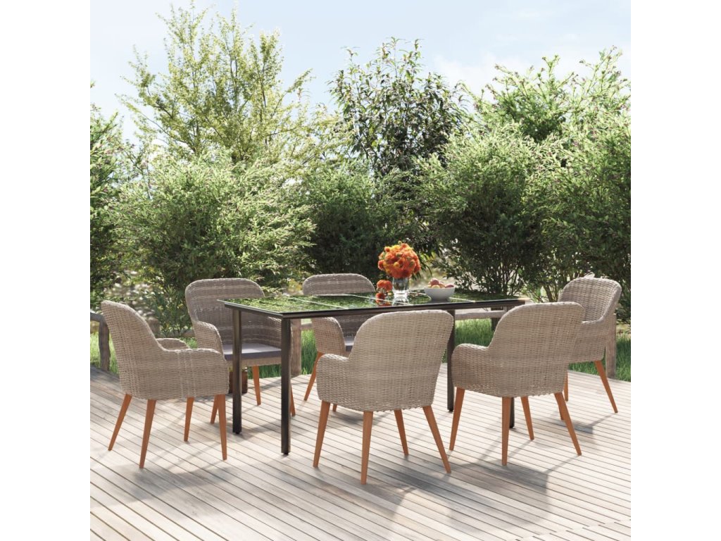 7dílný zahradní jídelní set s poduškami hnědý 3156723