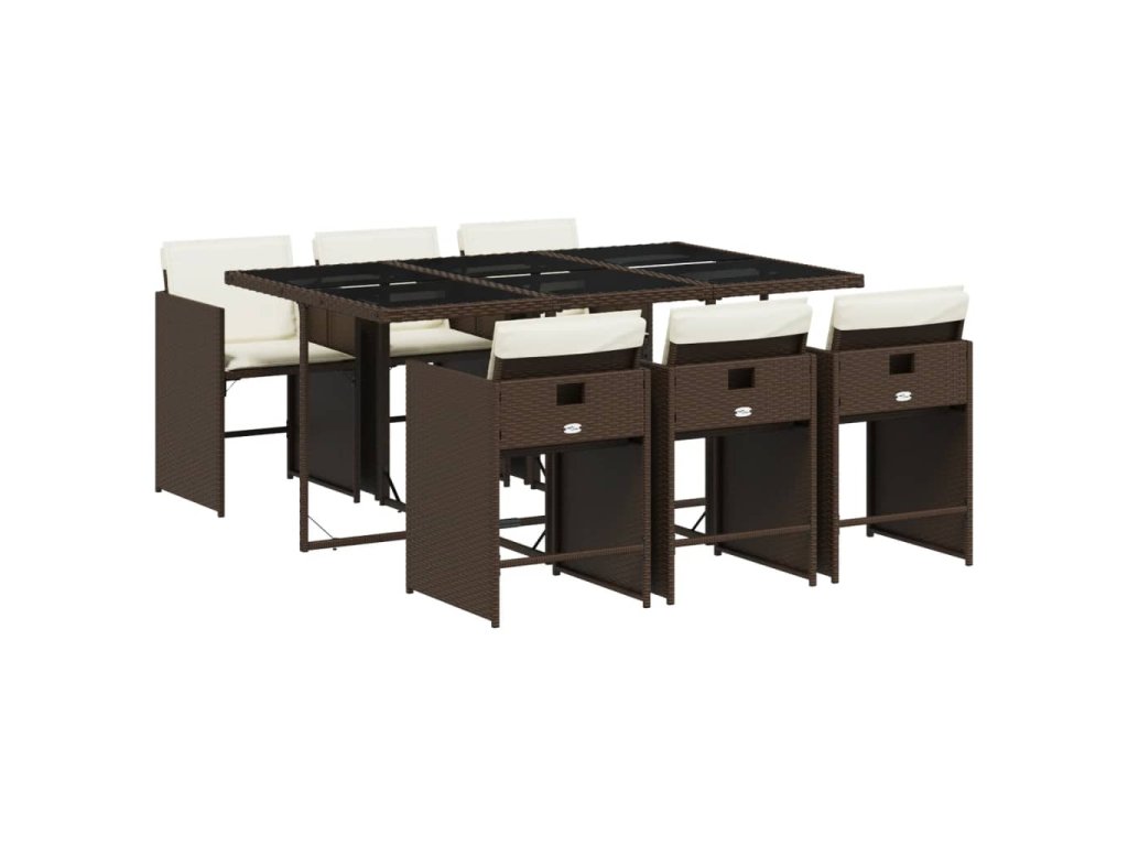 7dílný zahradní jídelní set s poduškami hnědý polyratan 3211089