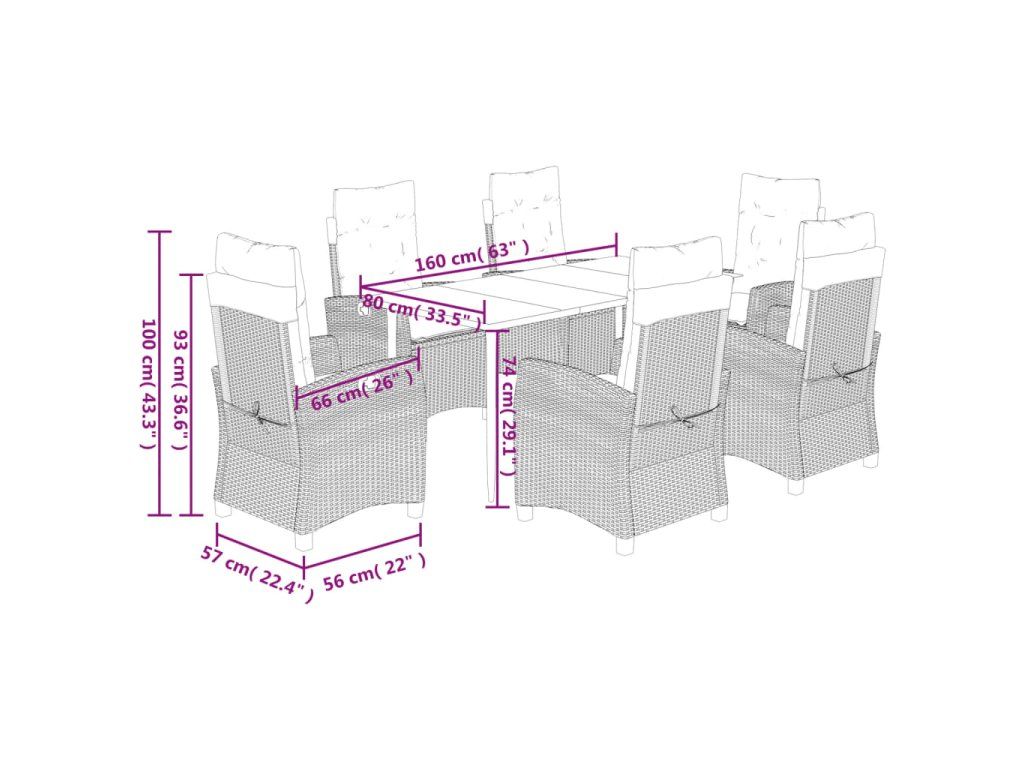 7dílný zahradní jídelní set s poduškami hnědý polyratan 3212767